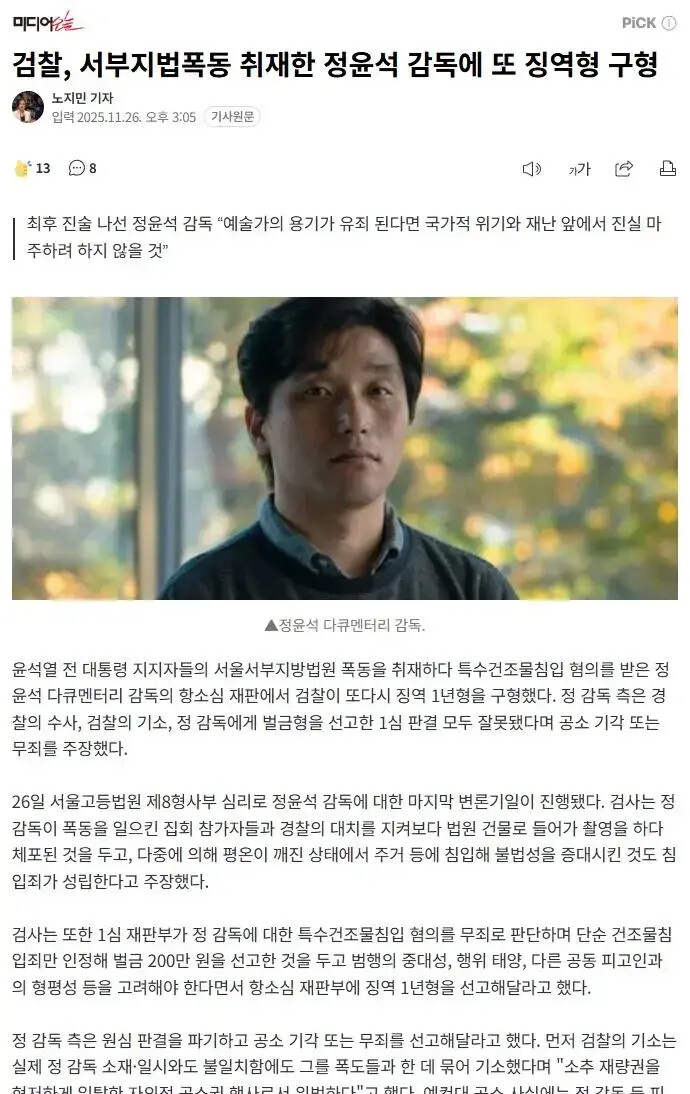 » 서부지법폭동 촬영감독 징역형 구형 2 사커퀵 2025.11.28 4